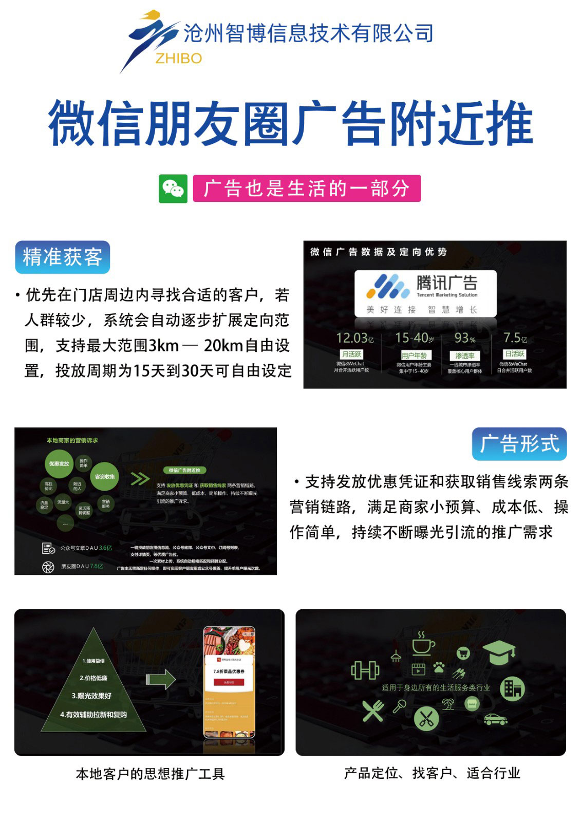 朋友圈廣告:獲得潛在優(yōu)質(zhì)粉絲、助力商業(yè)活動(dòng)、增加視頻傳播、推廣本地生活服務(wù)